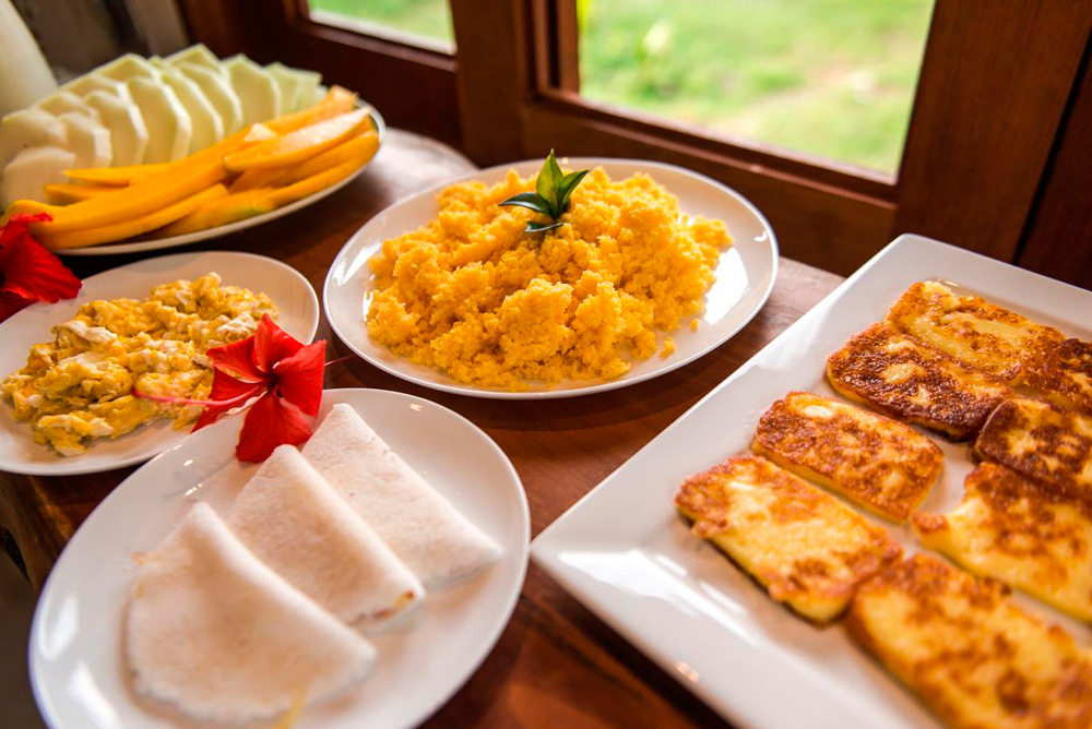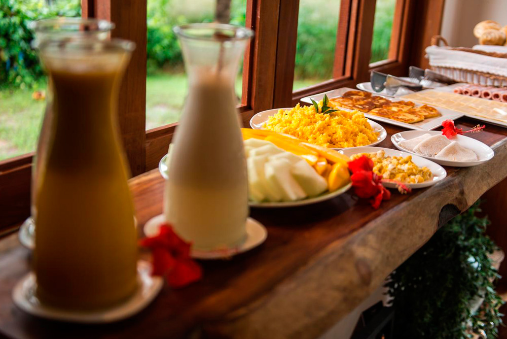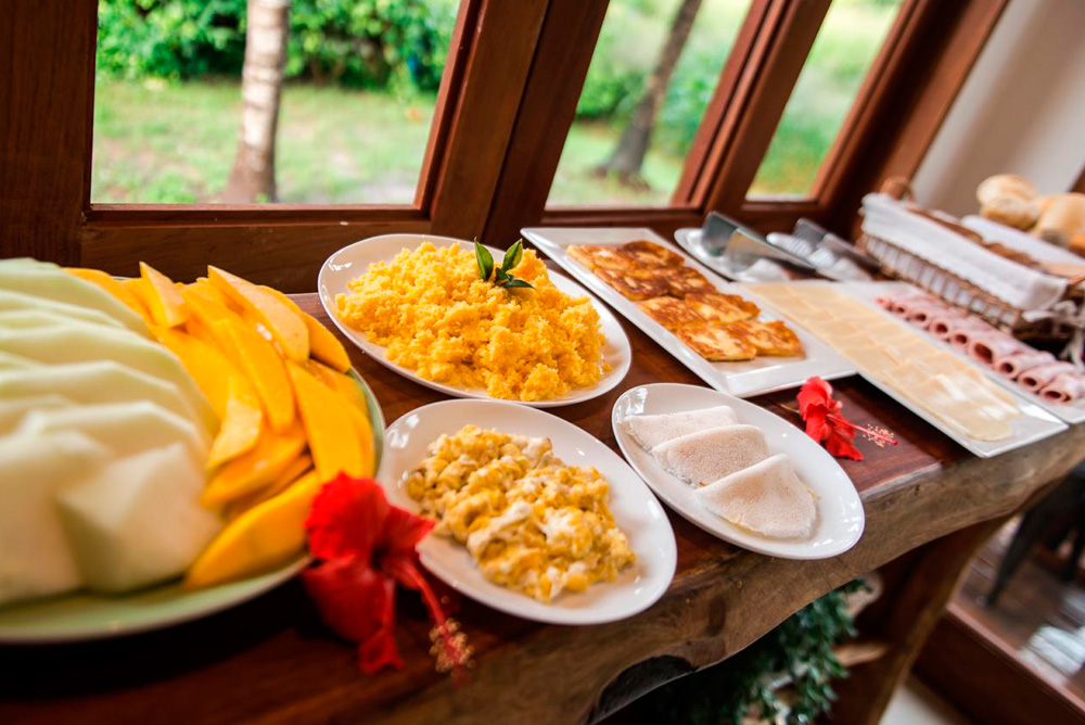É pra isso que você veio para Fernando de Noronha. Em nosso café, servimos ovos, tapiocas, pães, frios e frutas em um local inspirador: nosso deck com vista para o Morro do Pico.